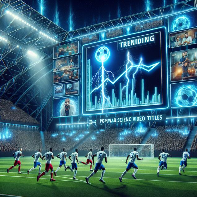 User prompt: Please describe a visual scene that prominently depicts both How trendy Steve Mould's YouTube video titles are and Points allowed by the Los Angeles Chargers, in the following situation: The more Steve Mould's video titles resonate with current trends, the greater the influence on the Chargers' defensive play. It seems the team just can't resist following the latest 'charged' trends to stay current on the field. As Mould's video titles spark a 'shocking' amount of interest, the Chargers' points allowed 'volt' up, showing that even in football, you can't escape the 'electric' pull of trendy content. . Keep the description simple.