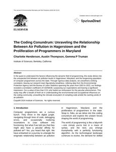 The Coding Conundrum: Unraveling the Relationship Between Air Pollution in Hagerstown and the Proliferation of Programmers in Maryland The Journal of Environmental Informatics and Tech Solutions Jan 2024 Reminder: This paper is AI-generated. Not real! |