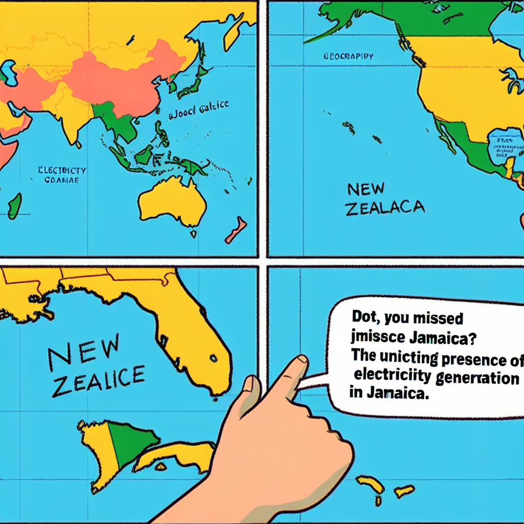 User prompt: Please make up a funny explanation for how a decrease in Popularity of the 'Maps Without New Zealand' meme caused Electricity generation in Jamaica to decrease. Add a funny one-liner at the end.