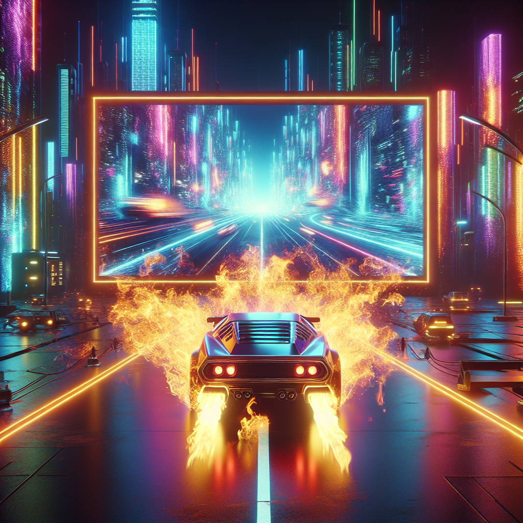 User prompt: Please respond with an image generation prompt that would be likely to create an interesting visual using DALLE-3, using the following style: [ Futuristic ] and depicting this scene: A bright red YouTube video titled "5 Mind-Blowing Science Hacks that Will Blow Your Mind!" flashes on the screen, with a Mercedes-Benz recalled vehicles being driven at high speed in the background. The clickbait title competes for attention with the urgency of the automotive recalls. Keep the visual depiction simple. Do not include any words or speech bubbles.