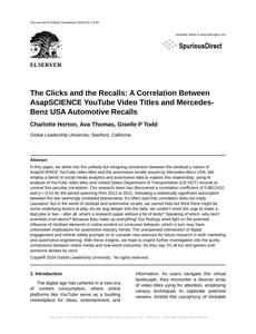 The Clicks and the Recalls: A Correlation Between AsapSCIENCE YouTube Video Titles and Mercedes-Benz USA Automotive Recalls