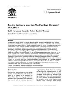 Fueling the Meme Machine: The Fox Says 'Kerosene' in Austria? The Journal of Internet Culture and Memetics Jan 2024 Reminder: This paper is AI-generated. Not real! |