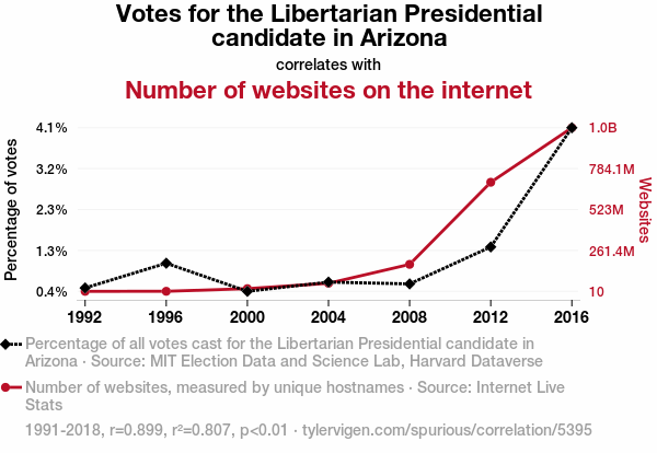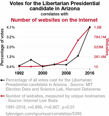 - The spurious research paper: The Web of Libertarians: Examining the Connection Between Votes for the Libertarian Presidential Candidate in Arizona and the Number of Websites on the Internet