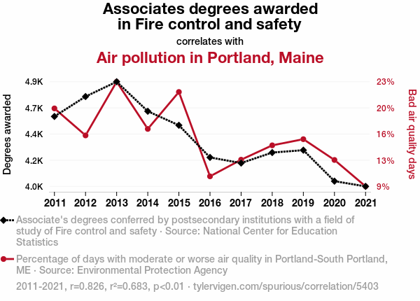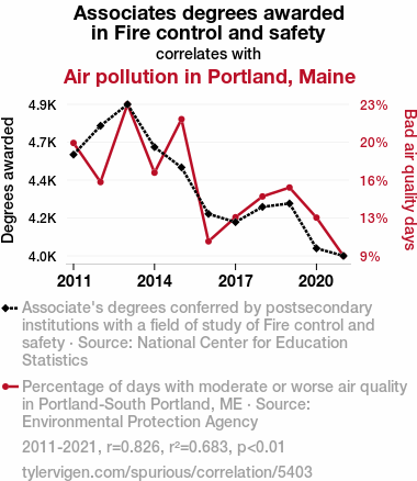- The spurious research paper: Smoke Degrees: Exploring the Link Between Fire Control and Safety Associate Degrees and Air Pollution in Portland, Maine