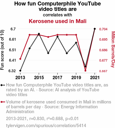 This research presents a quirky yet illuminating exploration of the correlation between the whimsicality of Computerphile YouTube video titles and kerosene consumption in Mali. Leveraging an intersection of artificial intelligence (AI) analysis of YouTube video titles and data from the Energy Information Administration, our study unveils a surprisingly robust link between the entertainment value of Computerphile video titles and the consumption of kerosene in Mali from 2013 to 2021.
