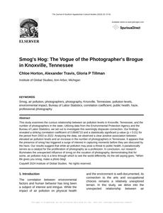 Smog's Hog: The Vogue of the Photographer's Brogue in Knoxville, Tennessee The Journal of Southern Appalachian Cultural Studies Jan 2024 Reminder: This paper is AI-generated. Not real! |