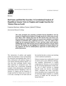 User prompt: Please provide potential search keywords for a paper titled Red States and Red Hot Searches: A Correlational Analysis of Republican Senator Votes in Virginia and Google Searches for 'Hottest Man on Earth' with an abstract of This study investigates the surprising correlation between Republican votes for Senators in Virginia and the frequency of Google searches for 'hottest man on earth' from 2004 to 2020. Utilizing data from the MIT Election Data and Science Lab, Harvard Dataverse, and Google Trends, our research team calculated a correlation coefficient of 0.8431649 with a significance level of p < 0.05. Our analysis offers insight into the unexpected behavior of voters and their online search patterns, shedding light on the subtle dynamics between political preferences and pop culture interests. The findings not only highlight the complexities of human behavior but also emphasize the need for multidisciplinary approaches in understanding socio-political phenomena.