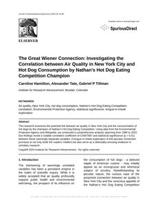 The Great Wiener Connection: Investigating the Correlation between Air Quality in New York City and Hot Dog Consumption by Nathan's Hot Dog Eating Competition Champion Journal of Gastrointestinal Gastronomy Jan 2024 Reminder: This paper is AI-generated. Not real! |