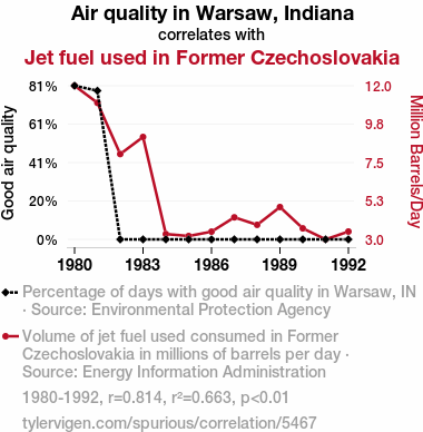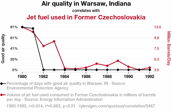 - The spurious research paper: Jet Set Air Quality: Unveiling the Connection Between Warsaw, Indiana, and Former Czechoslovakia's Jet Fuel