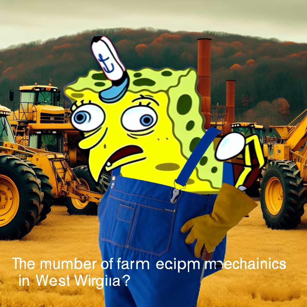 Create a meme inspired by the mocking spongebob meme that in some way references The number of farm equipment mechanics in West Virginia. Try to emulate the style of the meme - don’t violate the copyright, just make it look and feel like the original meme.