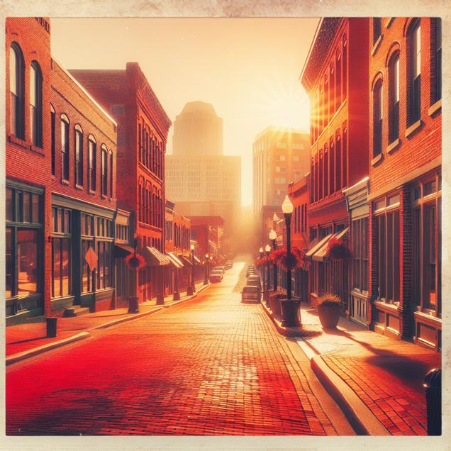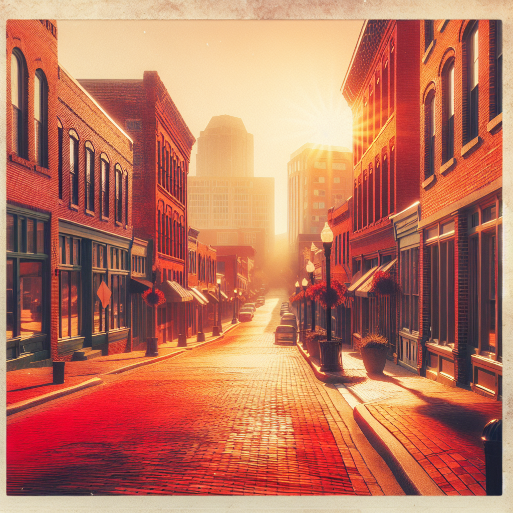 ChatGPT: Style: A vintage Polaroid photo Scene: In Greenville, South Carolina, the streets are lined with clean, red bricks basking in the sunlight. The air is clear and the once hidden redness of the bricks is now proudly on display for all to see. As a result, the number of brickmasons in South Carolina has decreased as the demand for covering up soot-covered bricks has diminished. Enhanced Visual prompt: Create an image that captures the warm, golden glow of the sun bathing the red brick streets of Greenville, South Carolina. The bricks should appear vibrant and clean, their rich red hues accentuated by the sunlight. Include subtle evidence of the city's transformation, as the gleaming bricks reveal a diminished need for brickmasons. The overall scene should evoke a sense of quiet beauty and the resilience of a changing urban landscape.