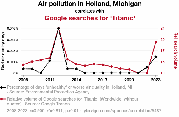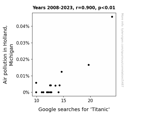 Netherlands, air pollution, Google searches, Titanic, correlation, Holland Michigan, environmental factors, Google Trends, research, air quality, pop culture phenomena, data analysis, relationship, sea pollution, maritime history, romantic movies