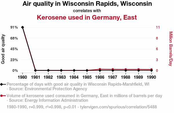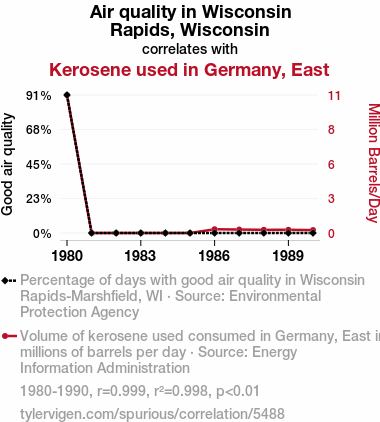 - The spurious research paper: The Scent of a Correlation: Exploring the Air Quality in Wisconsin Rapids and the Kerosene Conundrum in East Germany