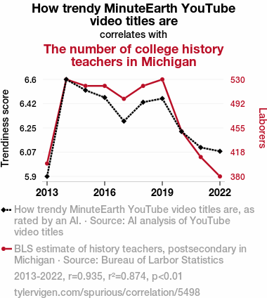 This paper investigates the scarcely explored relationship between the trendy video titles of MinuteEarth YouTube channel and the number of college history teachers in the state of Michigan. Using data from AI analysis of YouTube video titles and Bureau of Labor Statistics, we conducted a comprehensive examination to shed light on this curious association.