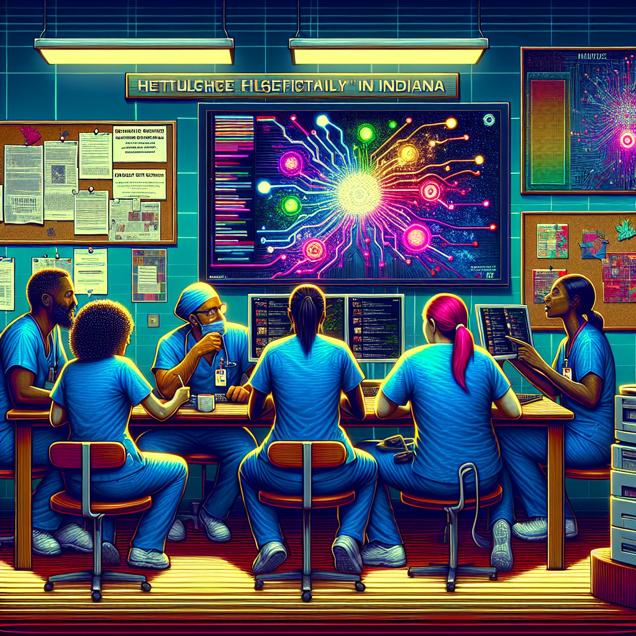 ChatGPT: Generate an image of a bustling hospital break room in Indiana where a group of orderlies are gathered around a laptop, animatedly discussing one of Tom Scott's latest YouTube video titles. The room is filled with laughter and excitement as they eagerly share their favorite parts of the video with each other. On a nearby notice board, a series of Tom Scott's video titles are pinned up, showcasing the growing trendiness and buzz surrounding his content. The orderlies' enthusiasm is contagious, and it's evident that their collective passion for Tom Scott's videos is spreading throughout the hospital, sparking a surge in interest in his educational content. The cyber art style should infuse elements of digital data streams and futuristic visual effects, creating a sense of technological energy and connectivity within the hospital break room. The colors and patterns should evoke a digital aesthetic, with intricate details representing the exchange of information and the impact of Tom Scott's educational content.