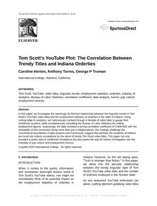 User prompt: Please provide potential search keywords for a paper titled Tom Scott's YouTube Plot: The Correlation Between Trendy Titles and Indiana Orderlies with an abstract of In this paper, we investigate the seemingly far-fetched relationship between the linguistic trends in Tom Scott’s YouTube video titles and the employment statistics of orderlies in the state of Indiana. Using cutting-edge AI analytics, we meticulously combed through a decade of video titles to gauge their trendiness quotient, while simultaneously consulting the Bureau of Labor Statistics for orderly employment figures. Surprisingly, the data revealed a strong correlation coefficient of 0.8087962 with the probability of this connection being more than just a happenstance. Our findings challenge the conventional boundaries of data analysis and humorously suggest that perhaps the residents of Indiana are lured into orderly occupations by the allure of trendy Tom Scott video titles. This paper not only provides a quirky twist to traditional correlations but also paves the way for further investigation into the interplay of pop culture and employment choices.