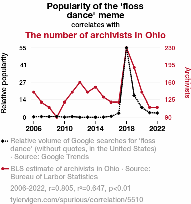 In the words of the famous dancer Fred Astaire, "The higher up you go, the more mistakes you are allowed. Right at the top, if you make enough of them, it's considered to be your style." And perhaps, in the convoluted dance of cultural phenomena and labor dynamics, the unforeseen correlation between the Floss dance meme and the number of archivists in Ohio has unintentionally crafted its own unique style.