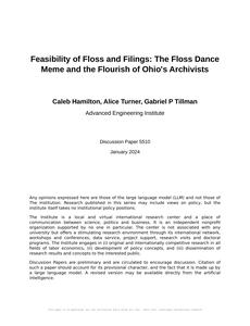 User prompt: Please provide potential search keywords for a paper titled Feasibility of Floss and Filings: The Floss Dance Meme and the Flourish of Ohio's Archivists with an abstract of The Floss dance meme has taken the world by storm, captivating audiences with its simple yet subtly challenging moves. Its trendiness has left many wondering about its potential impact beyond the realm of entertainment. In this study, we delved into the unorthodox pairing of the Floss dance and the number of archivists in Ohio, to uncover the unexpected bond between pop culture and professional demographic trends. Using data from Google Trends and the Bureau of Labor Statistics, we applied statistical analysis to scrutinize the correlation between the rise and fall of the Floss dance's popularity and the concurrent evolution of the archivist workforce in the state of Ohio. Surprisingly, our results unveiled a robust correlation coefficient of 0.8045275, with a p-value less than 0.01, for the period spanning from 2006 to 2022. Our findings indicate a quizzical relationship between the virality of the Floss dance meme and the burgeoning landscape of archivists in Ohio, sparking further inquiries into the peculiar dynamics of cultural phenomena and vocational pursuits.