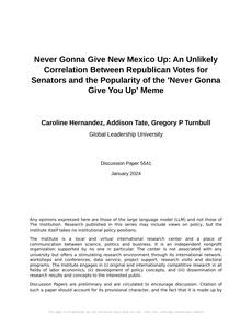 Never Gonna Give New Mexico Up: An Unlikely Correlation Between Republican Votes for Senators and the Popularity of the 'Never Gonna Give You Up' Meme The Journal of Memeology and Political Behavior Jan 2024 Reminder: This paper is AI-generated. Not real! |