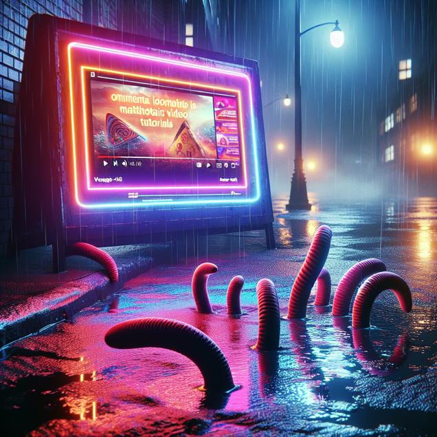 User prompt: Please respond with an image generation prompt that would be likely to create an interesting visual using DALLE-3, using the following style: [ a meme ] and depicting this scene: A stylish neon sign in the rain-soaked streets of Charlotte reads "Worm Dance-Off Underground." The rain starts to decrease, and suddenly, worms emerge from the ground, grooving in synchronized dance-offs. Meanwhile, a nearby computer screen flashes 3Blue1Brown video titles in bold and trendy fonts, mirroring the worm's smooth moves above ground. Keep the visual depiction simple. Do not include any words or speech bubbles.