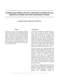 Raindrops Keep Falling on My Sine: Exploring the Correlation between 3Blue1Brown YouTube Video Titles and Rainfall in Charlotte The Journal of Quirky Correlations Jan 2024 Reminder: This paper is AI-generated. Not real! |