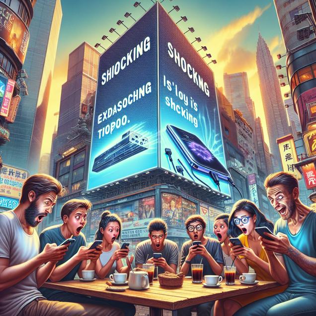 Prompt: Generate an image that conveys a sense of humor and absurdity inspired by the scenario: - Scene: In a vibrant city, a group of friends sits at a café, surrounded by the bustling urban landscape. They are engrossed in their smartphones, with each person comically looking up "how to fake your own death" on Google. The friends exhibit puzzled expressions and glance at each other with a mix of concern and mischief. - Context: Nearby, a large billboard displays the latest YouTube video titles from Technology Connections, featuring sleek graphics and advanced technical terms. The juxtaposition of the friends' peculiar search and the high-tech content on the billboard creates a humorous and surreal atmosphere. By incorporating elements of modern technology, urban life, and playful absurdity, DALL·E-3 will produce an image that reflects the interplay of contemporary culture and absurd humor. The depiction should include only scenes, people, and objects, it should not include text or speech bubbles.