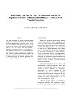 Please draft the title and abstract of an academic research paper presenting the findings of the connection between Popularity of the 'aint nobody got time for that' meme and The number of university physics teachers in West Virginia. Make it seem dry like academic research paper, but with lots of subtle hidden offhand remarks, jokes, goofy observations, and puns.
