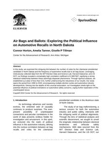 - The spurious research paper: Air Bags and Ballots: Exploring the Political Influence on Automotive Recalls in North Dakota