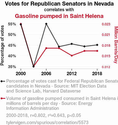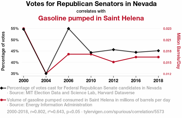 - The spurious research paper: Republican Representation in Nevada and the Relationship to Rocketing Gasoline in Saint Helena
