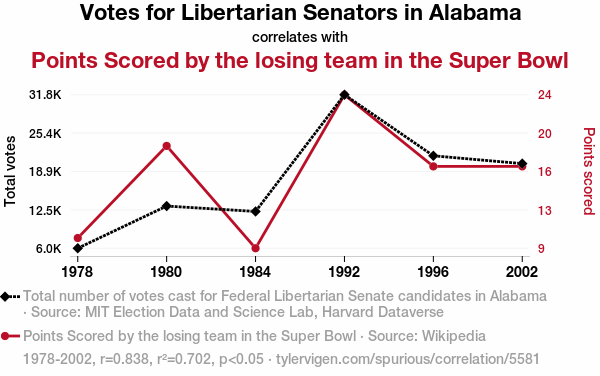 libertarian leaning, political preferences, Alabama senators, super bowl setbacks, correlation coefficient, statistical scrutiny, electoral dynamics, sports analysis, correlation vs causation