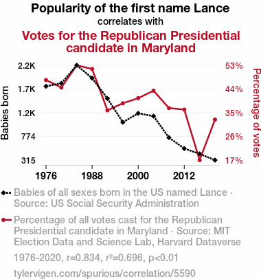 Loving Lance: Linking the Likelihood of Voting for the GOP in Maryland to the Popularity of the First Name "Lance"