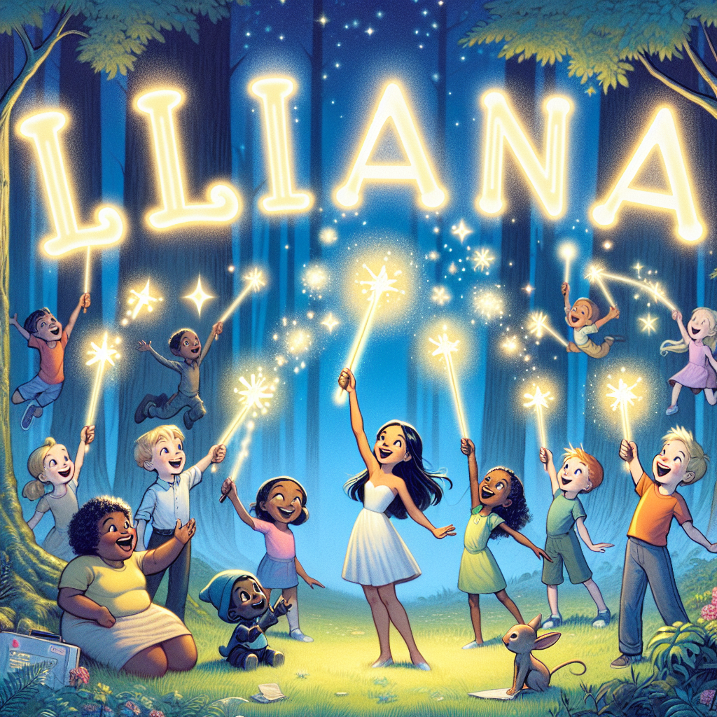 Prompt: Generate an image that emulates the whimsical and enchanting style of a Pixar movie. Depict a magical forest scene with shimmering, glowing letters spelling out the name "Ilana" floating overhead. Surrounding the letters are a playful army of children, each with a magical wand, joyfully casting spells. Each little Ilana giggles gleefully as they cast their spell, and with each wave, the Total likes of MinuteEarth's YouTube videos steadily climbs. Fill the air with a sense of wonder and delight as the digital landscape becomes a colorful tapestry of admiration and appreciation for all things MinuteEarth, all thanks to the mystical influence of the name Ilana. The depiction should include only scenes, people, and objects, it should not include text or speech bubbles.