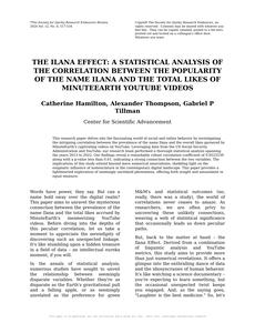 The Ilana Effect: A Statistical Analysis of the Correlation Between the Popularity of the Name Ilana and the Total Likes of MinuteEarth YouTube Videos The Journal of Whimsical Social Sciences Jan 2024 Reminder: This paper is AI-generated. Not real! |