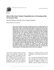 Skies of Blue States: Remote Voting Behaviors in Wyoming and the Jet Stream of Niue The Journal of Political Meteorology Jan 2024 Reminder: This paper is AI-generated. Not real! |