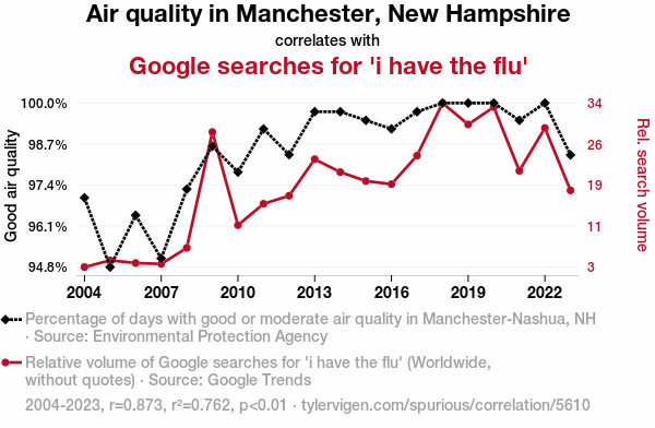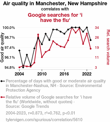 - The spurious research paper: Flu-Glue: The Relationship Between Air Quality in Manchester, New Hampshire and Google Searches for 'I Have the Flu'