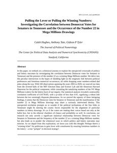 Pulling the Lever or Pulling the Winning Numbers: Investigating the Correlation between Democrat Votes for Senators in Tennessee and the Occurrence of the Number 22 in Mega Millions Drawings The Journal of Political Numerology Jan 2024 Reminder: This paper is AI-generated. Not real! |