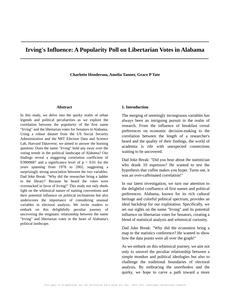 - The spurious research paper: Irving's Influence: A Popularity Poll on Libertarian Votes in Alabama