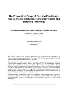 The Provocative Power of Puzzling Ponderings: The Connection Between Technology Tidbits and Tempting Twitterings The Journal of Whimsical Cyber Wonders Jan 2024 Reminder: This paper is AI-generated. Not real! |