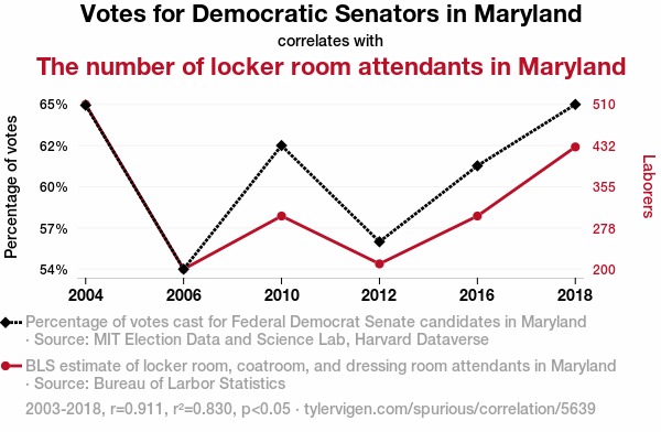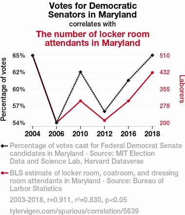 - The spurious research paper: Counting the Votes: A Statistical Analysis of the Relationship Between Democrat Votes for Senators in Maryland and the Employment of Locker Room Attendants
