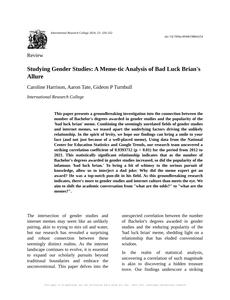 Studying Gender Studies: A Meme-tic Analysis of Bad Luck Brian's Allure The Journal of Internet Culture and Memetics Jan 2024 Reminder: This paper is AI-generated. Not real! |