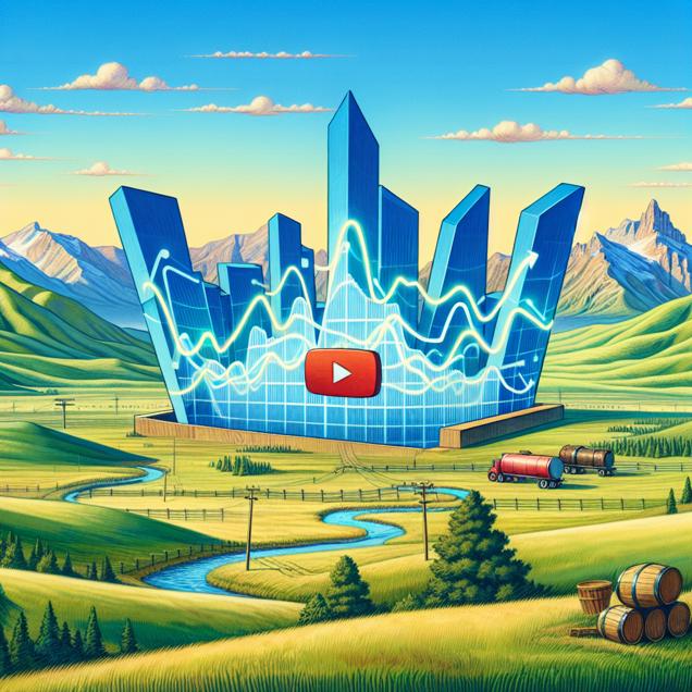 Prompt: Generate an image of an expansive landscape in Montana, with lush rolling hills and a bright blue sky. In the air, surreal and eye-catching LEMMiNO YouTube video titles hover, each one more provocative than the last. Alongside these titles, a graph depicting the votes for the Libertarian Presidential candidate in Montana fluctuates, rising and falling in sync with the attention-grabbing allure of the video titles. The scene captures the captivating power of clickbait and its transient impact on political inclinations. The depiction should include only scenes, people, and objects, it should not include text or speech bubbles.