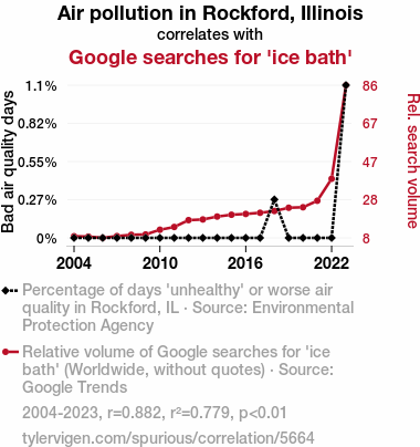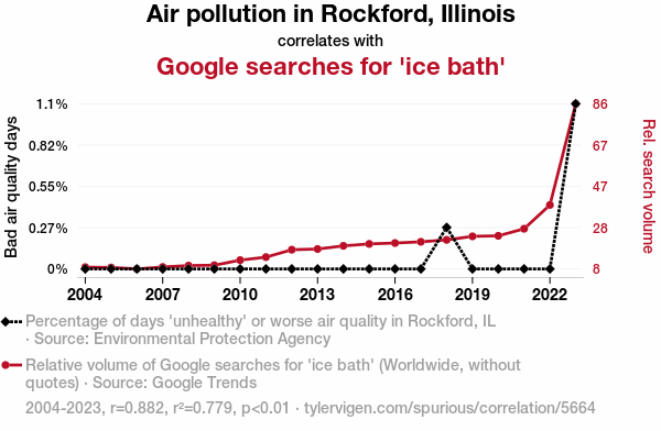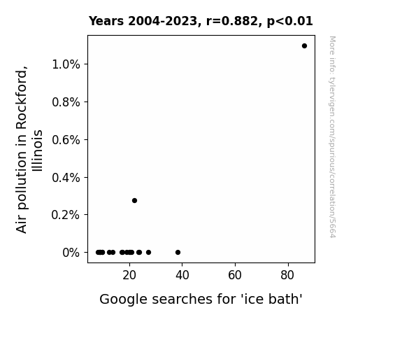 - The spurious research paper: Chilling Connections: Unveiling the Relationship Between Air Pollution in Rockford, Illinois and the Piquant Pursuit of Ice Baths