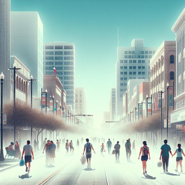 Prompt: Prompt: Create a photorealistic image depicting Corpus Christi, Texas, with people strolling through cleaner and less dusty streets. Show a clear blue sky in the background and minimal dust being kicked up as people walk. Capture a sense of improved air quality and the city's enhanced cleanliness due to fewer people being named Dusty. The depiction should include only scenes, people, and objects, it should not include text or speech bubbles.