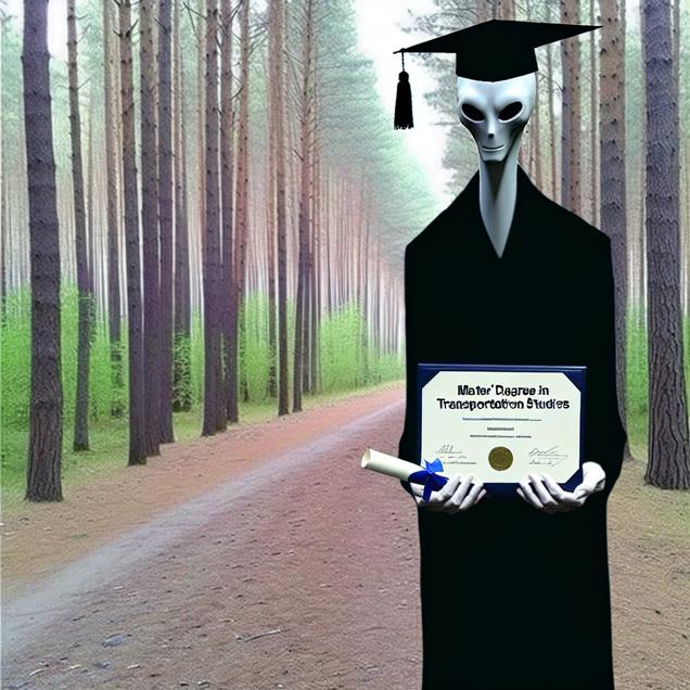Create a meme inspired by the slenderman meme that in some way references Master's degrees awarded in Transportation. Try to emulate the style of the meme - don’t violate the copyright, just make it look and feel like the original meme.
