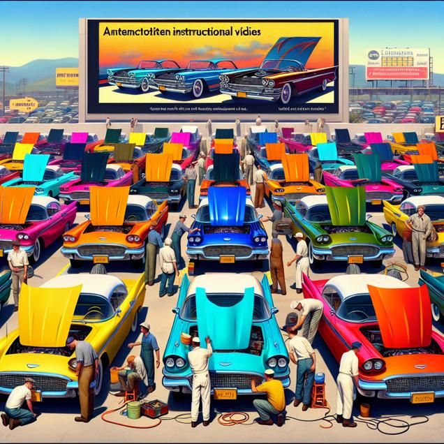 Prompt: Generate an image of a pop art style scene with a row of vibrant-colored, sleek Mercedes-Benz cars lining up in a bustling parking lot. Each car's hood is open, and mechanics are diligently working on them, adding a dynamic touch to the scene. Above the cars, a large digital screen showcases CGP Grey's YouTube channel, with attention-grabbing titles and thumbnails, emanating a bold and eye-catching aura. The cars possess an air of pride and confidence as they appear to collectively generate buzz for the channel, creating a visually captivating and engaging moment. The depiction should include only scenes, people, and objects, it should not include text or speech bubbles.