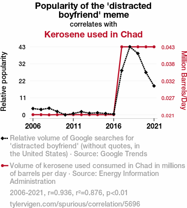 - The spurious research paper: Lighting Up the Internet: A Combustible Connection Between the 'Distracted Boyfriend' Meme and Kerosene Consumption in Chad
