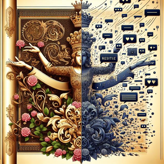 Prompt: Generate an image that seamlessly blends two distinct scenes. In the upper portion of the image, create a regal, vintage scroll adorned with elaborate golden lettering that spells out the name "Princess." Surround the scroll with intricate roses and an opulent crown, giving it an air of royal elegance. In the lower half of the image, display a dynamic YouTube video by Casually Explained, with a cascade of thoughtful and polite comments streaming down the screen like digital confetti. Ensure that the two visuals are intertwined in a harmonious way, symbolizing the convergence of the name "Princess" and the surge of courteous comments prompted by its popularity. The depiction should include only scenes, people, and objects, it should not include text or speech bubbles.