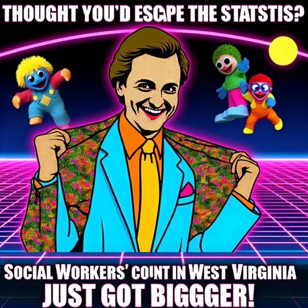 Create a meme inspired by the rickroll meme that in some way references The number of social workers in West Virginia. Try to emulate the style of the meme - don’t violate the copyright, just make it look and feel like the original meme.