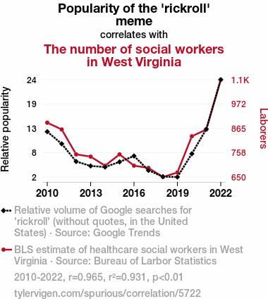 "Never Gonna Give You Up, Never Gonna Let You Down: An Unlikely Link Between the 'Rickroll' Meme and the Number of Social Workers in West Virginia"