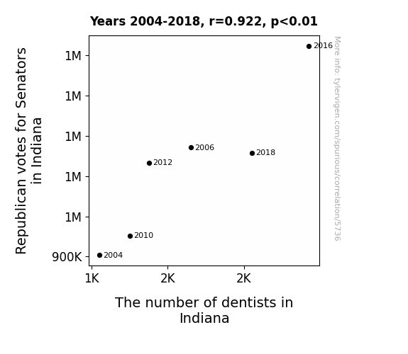 In this paper, we take a closer look at the peculiar connection between Republican senatorial votes and the number of dentists in Indiana. We recognize that at first glance, this correlation may seem as out of place as a toothbrush at a polling station, but rest assured that our approach is anything but tongue-in-cheek. We've scrutinized the data with all the rigor and precision of a dental check-up, aiming to extract as much meaning as possible from what seemed to be an obscure and improbable association.
